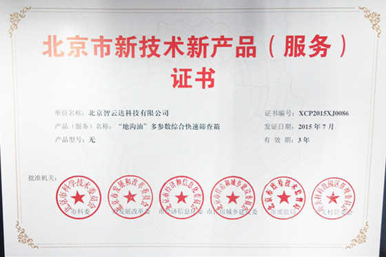 北京市新技術(shù)新產(chǎn)品(服務(wù))證——“地溝油...
