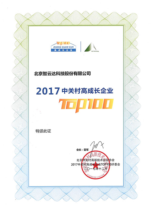 2017中關(guān)村高成長(zhǎng)企業(yè) TOP100