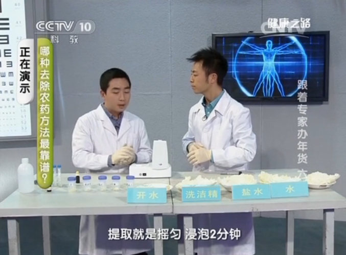 農藥殘留問題是食品安全問題的重災區,老百姓都不希望將農藥吃進肚子里,怎么清洗最有效,專家通過實驗告訴你。技術工程師劉誼逸分別提取用清水、鹽水、洗潔精、開水清洗過的蔬菜樣品,加入試劑制成溶液,放置入由北京智云達自主研發生產的