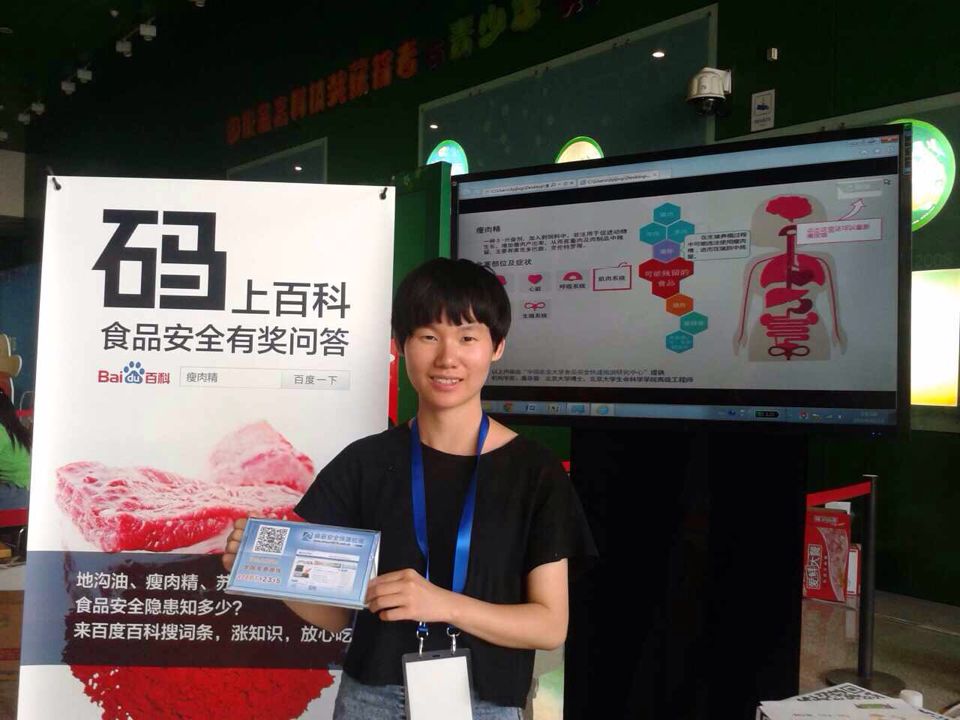 在活動現場,我們演示了地溝油、瘦肉精等詞條的Flash,輕松有趣的動畫在吸引了很多小朋友及家長關注的同時,也向人們展現了地溝油、瘦肉精等對人體的危害。我們還開展了食品安全知識有獎問答活動,通過掃二維碼進入百科詞條找答案,贏取亞硝酸鹽速測卡、阿貍明信片等禮品。