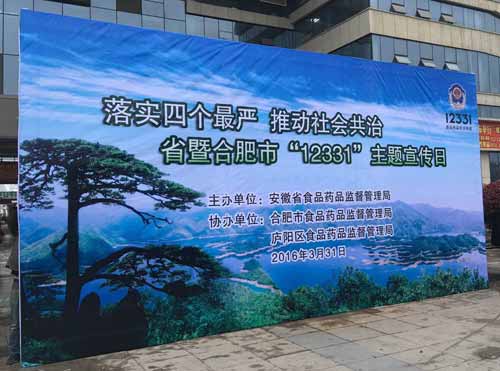 2016年 3月31日上午9:00,在安徽省合肥市廬陽區中菜市(大農貿市場),舉辦2016“落實四個最嚴,推動社會共治,安徽省暨合肥市“12331”主題宣傳活動”。本活動由安徽省食品藥品監督管理局主辦,合肥市食品藥品監督管理局、廬陽區食品藥品管理局協辦,CEC(安徽)食品安全檢測消費者體驗中心(以下簡稱:CEC(安徽)食安體驗中心)等組織參與。