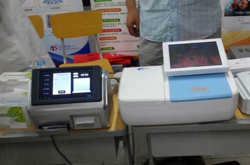 北京智云達(dá)新產(chǎn)品膠體金讀卡儀(左)農(nóng)藥殘留速測儀(右)