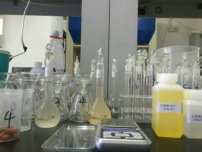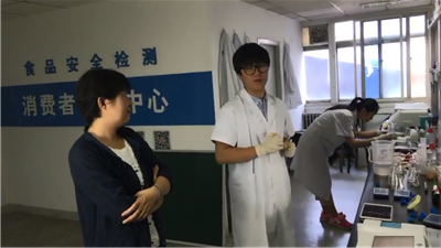 北京智云達技術工程師楊老師和趙老師首先對不同樣品通過使用北京智云達自主研發生產的快速檢測產品:SMART-01F 多功能食品安全檢測儀,對不同樣品進行甜蜜素與山梨酸鉀含量的檢測。