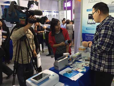 展位前擁擠不斷的人群更是吸引了東方衛(wèi)視的記者朋友的眼球,來到北京智云達展位前,對快檢試劑盒操作及常見食品檢測等問題進行現(xiàn)場采訪。