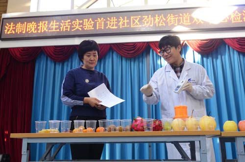 2016年11月24日9:00,北京智云達科技股份有限公司(以下簡稱“北京智云達”)與法制晚報聯手制作首次走進社區活動,在勁松街道雙中心西大望路社區市民學校檢測水果糖度。