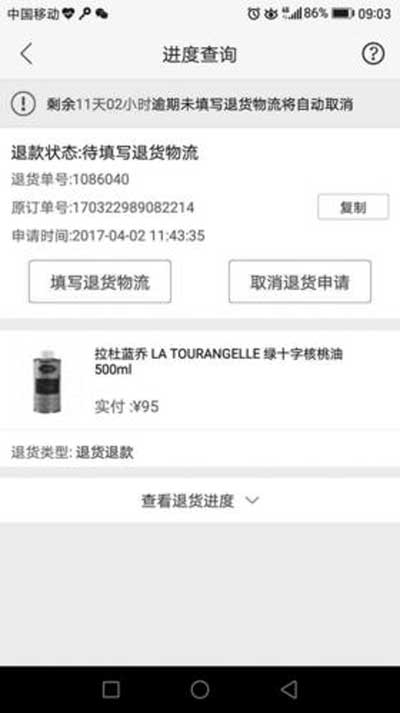 隨后,王女士也表示,網(wǎng)上公布的說(shuō)明文件除中文說(shuō)明外,其余證明資料均字跡不清,希望蜜芽方面能提供清晰的說(shuō)明原件。4月2日,蜜芽告知王女士,由于一些原因,無(wú)法提供原件。同時(shí)蜜芽客服也表示,作為最終的處理結(jié)果,王女士除了能無(wú)條件退貨退款外,蜜芽網(wǎng)還將贈(zèng)送王女士一張50元的優(yōu)惠券。王女士在電話中表示,沒(méi)有一個(gè)明確的解釋,自己是不會(huì)認(rèn)可蜜芽的處理結(jié)果的。4月2日下午,王女士的蜜芽賬戶中突然多了50元的優(yōu)惠券,并且自己購(gòu)買核桃油的訂單狀態(tài)自動(dòng)變成了“退貨退款”。