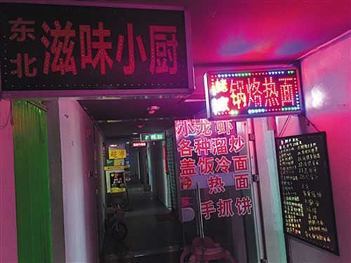 3號樓原有11家餐館,也只有一家營業(yè)。店鋪大門緊閉,敲門后,老板謹慎地探出頭看了看,才開門讓食客進店,隨即又關(guān)上店門。