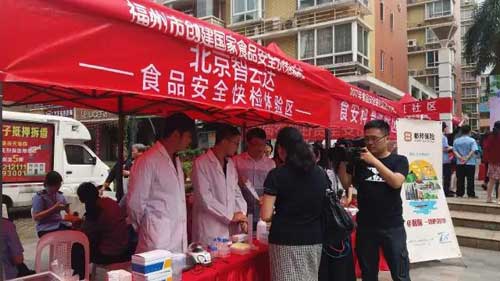 2017年5月10日上午9:30,“福州市晉安區食品安全委員會辦公室”與“福州市晉安區市場監督管理局”主辦的晉安區食品安全進社區啟動儀式在砌池社區舉行,北京智云達科技股份有限公司(以下簡稱“北京智云達”)榮幸受邀到現場提供食品安全快檢技術。