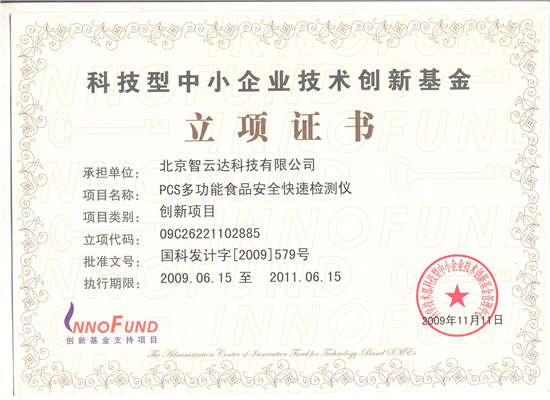 科技型中小企業技術創新基金立項證書