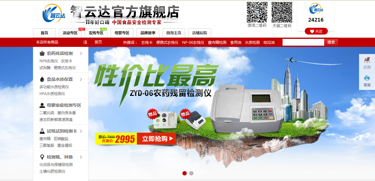 智云達食品檢測天貓ZYD旗艦店成立兩周年以來,在激烈的網(wǎng)購市場競爭中脫穎而出,網(wǎng)購快檢產(chǎn)品銷量遙遙領(lǐng)先。