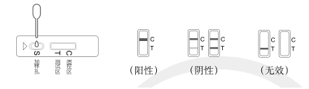 無效:位置 C 不顯示出條帶,則無論位置 T 顯示出條帶與否,該速測(cè)卡均判為無效,請(qǐng)重測(cè)。