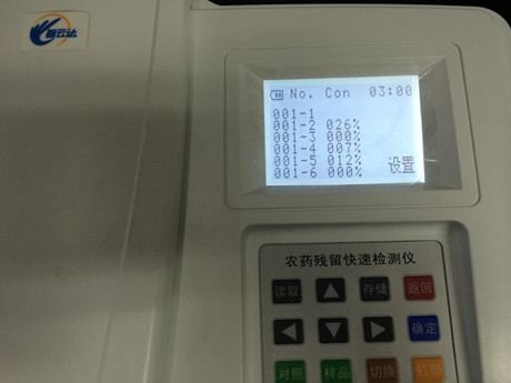 實驗結果:抑制率分別為26%、0%、7%、12%、和0%,農殘未超標。判定依據,抑制率≥50%時,農殘超標。
