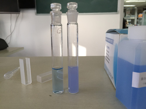 空白管:取1 mL蒸餾水于10 mL比色管中,加入4 mL顯色劑,搖勻。