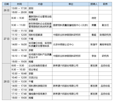 為幫助企業深入學習理解飼料法律法規,了解飼料行業監督檢查情況,使飼料行業從業者規范飼料生產、經營行為,強化管理,滿足飼料企業對新法規和檢測實驗室管理的需求,解決目前飼料企業工作中遇到的疑難問題,北京智云達科技股份有限公司將于2018 年12 月26 日~28 日在北京舉辦“飼料行業法律法規培訓班”。現將有關事宜通知如下: